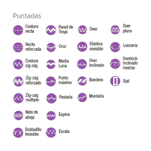 Punto decorativo, Punto invisible, Tres puntos, Bordado en zigzag